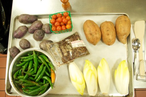 Today is about learning different vegetables, herbs, and spices, and then putting that knowledge to use in two vegetable-centric recipes: Nicoise-style ratatouille and a roasted beet and goat cheese salad. I’m not particularly excited to stand in front of Chef to learn about the different varieties of potatoes or the wonders of asparagus (or “asparagoose” as Chef would say) at 9 a.m. in a humid room, but Chef’s passion for different produce (and his lack for others) makes the class entertaining. Mushrooms get special attention. Just the word makes him laugh, and he brings up stories of him and his father foraging the forests of France to find wild shrooms. Just like your childhood, right?
