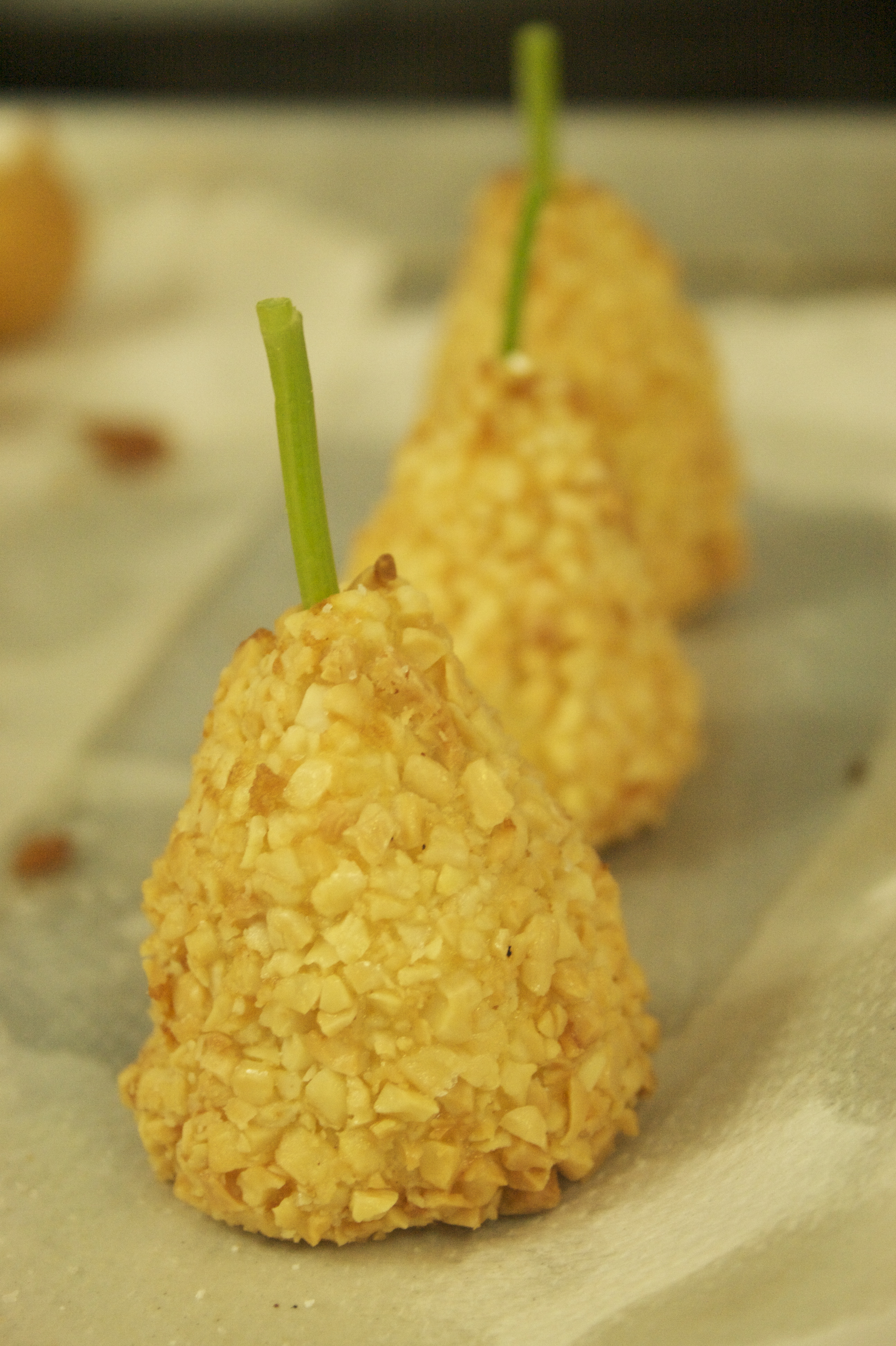 The most fun to make: Pommes croquettes. You can make them into any shape, and my station partner decided to make hers into candy-themed shapes (Tootsie Rolls, lollipop, etc).