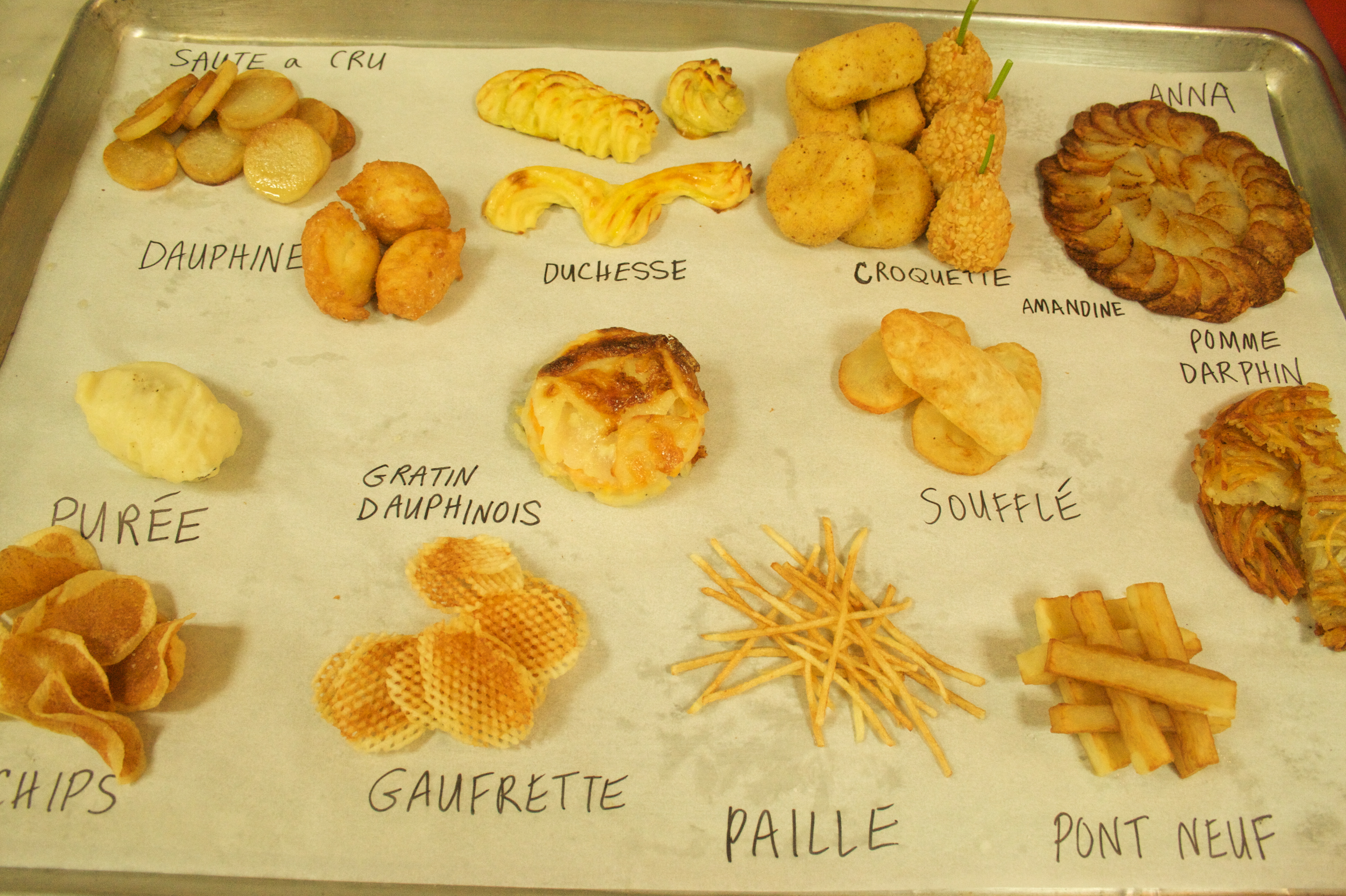 I heard this word about 100 times today. And for good reason. It’s potato day, and we learned 13 different preparations for potatoes. Pomme Anna, pomme dauphine, pommes dauphinois, pommes darphin…I basically felt like Forest Gump except I wasn’t trailing on about shrimp, but spuds.