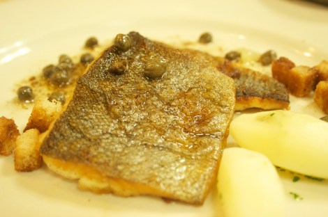 Our last dish for the day was one that Julia Child favors: Meunière. It literally translates to “Miller’s Wife,” but I have no idea how that relates to the butter sauce that floats this pan-fried fish. It’s simply sublime. We get a nice sear on the skin side of our delicate trout, and then drizzle a browned butter sauce that’s flavored with lemon segments and capers to brighten it up.