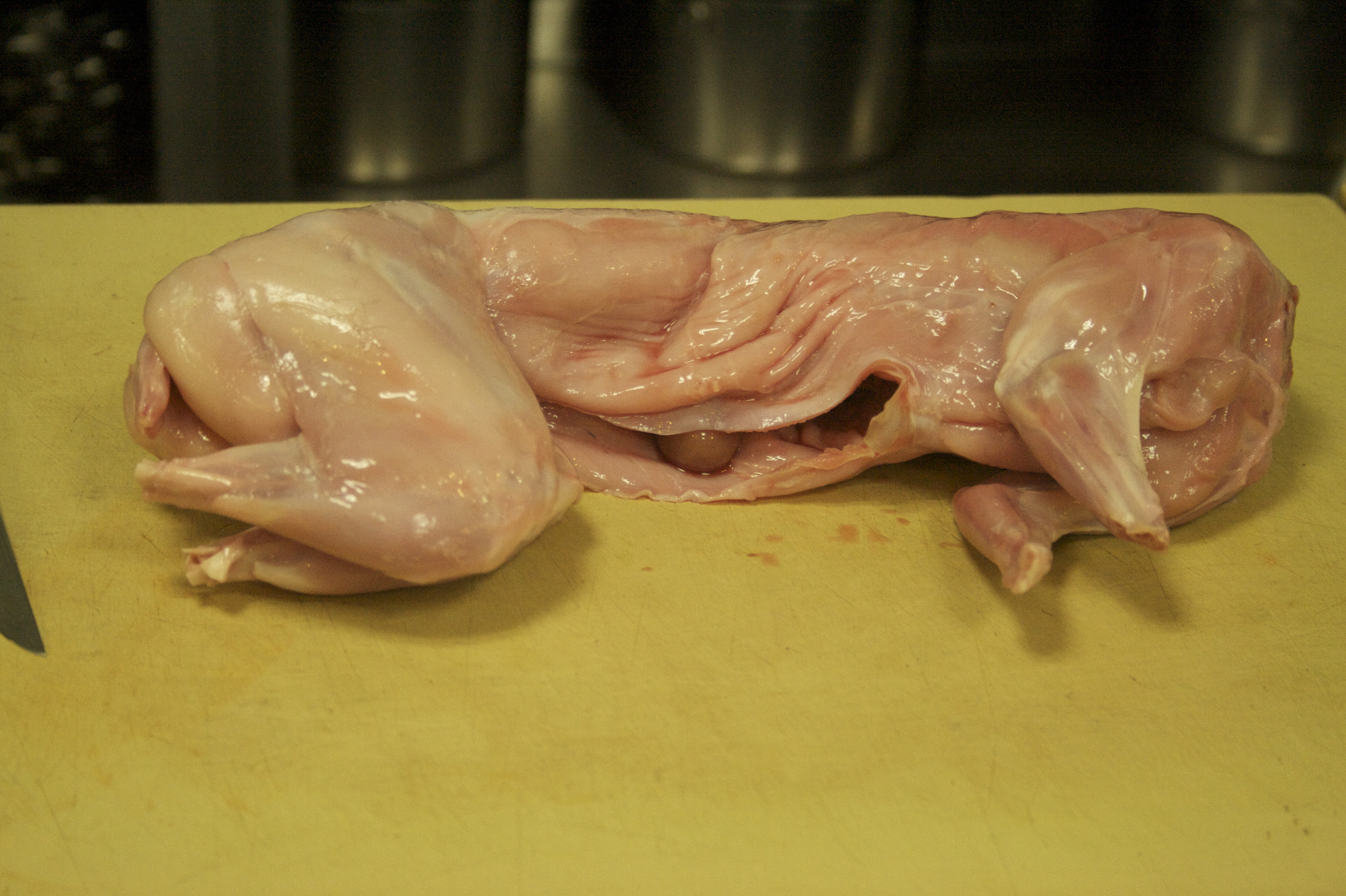 I’ve never eaten rabbit and I attribute it to having a pet rabbit, Honey Bunny, when I was younger. I thought it unjust to take a fork to a rabbit when I’d play with another at home. Fast-forward more than a decade, and I’m a total hypocrite as I take a butchering knife to a bunny carcass.