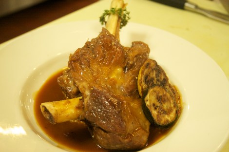 Our second dish was a braised lamb shank so big it looked like something you’d see Fred Flinstone eat. And that’s exactly the portion I dream of.