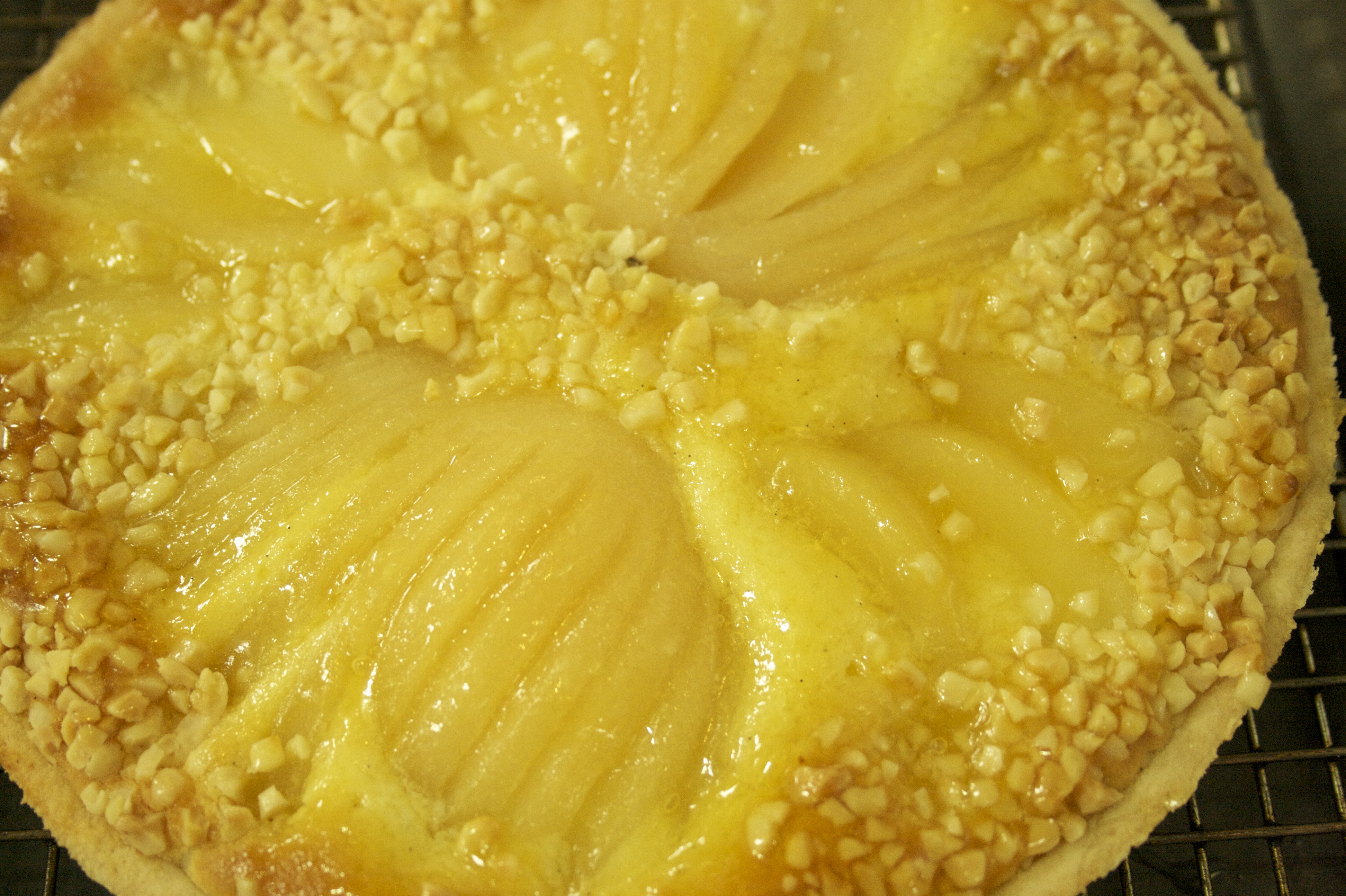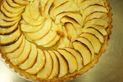 We started the morning rolling out two types of dough: pate sucree (sweet) and pate brisee (savory). Whenever you’re rolling out a dough that has butter in it, you need to work fast. If you don’t, you’ll have a dough that has pockets of melting butter and you’ll have a hard time getting it off your rolling pin. So always make sure to flour your work surface, dough, and rolling pin before starting. After rolling your dough out, pop it in the fridge so it can chill the butter and relax the gluten, making a flakier pastry.