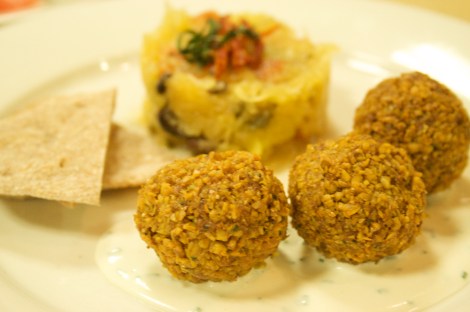 And I opted out of lunch today because of my falafel failure. The falafel I’m used to has a smoother belly, and a crispy exterior. But my falafel was crunchy–like uncooked grits crunchy. But I’m a falafel rookie, and it showed when I was trying to ball them. My mixture keep falling apart and I attribute it to my tiny hands since when Chef came over, he was able to make one as easily as rolling a cookie.