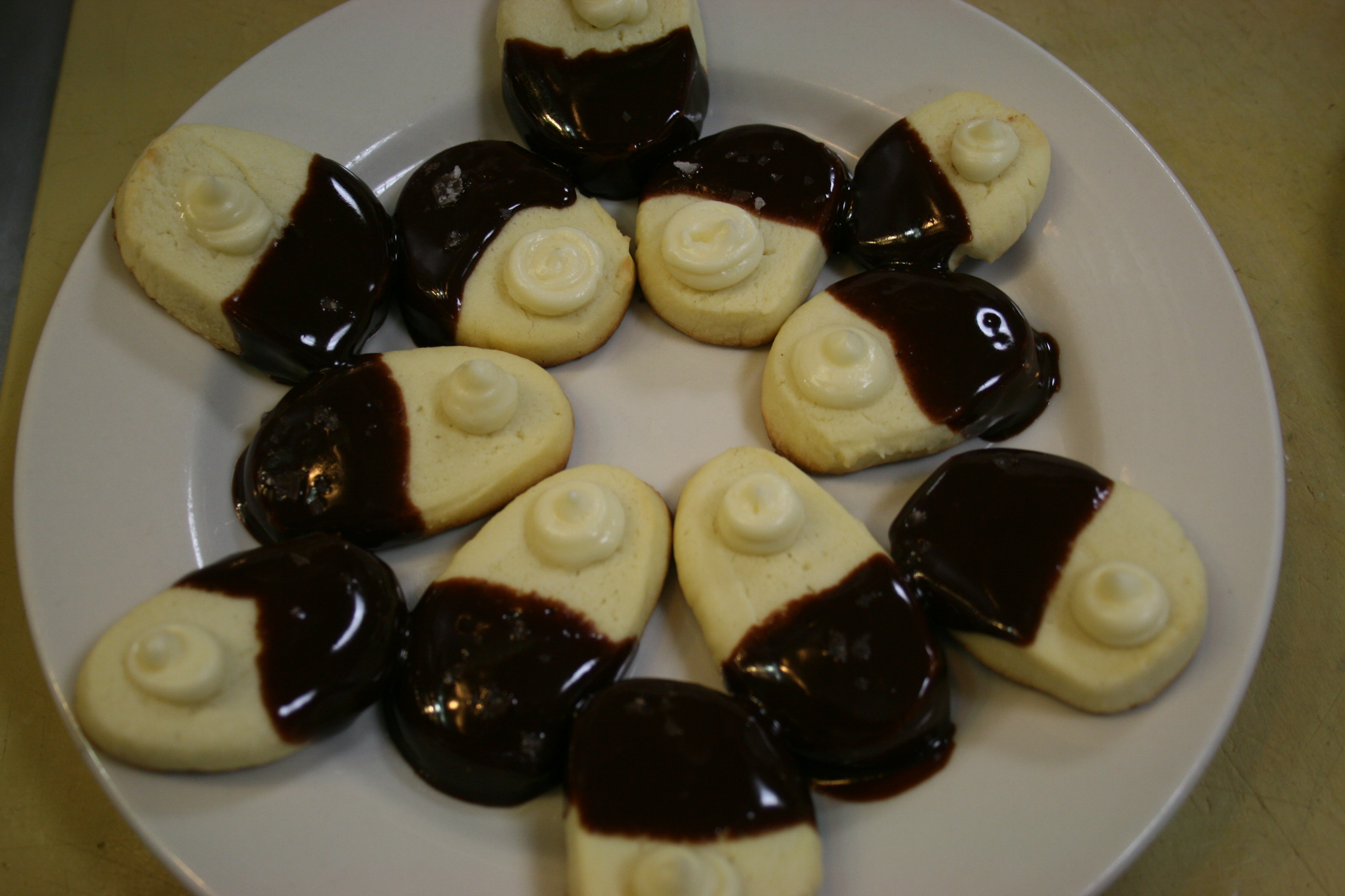And I felt so calm and on top of my two dishes, I made shortbread cookies from the leftover dough I had from my lemon tart. In fact, I had so much time on my hands that I had enough time to make a second batch after I burned the first. (That’s what you get for putting cookies in the oven right before you have to present poached eggs covered with hollandaise sauce.)