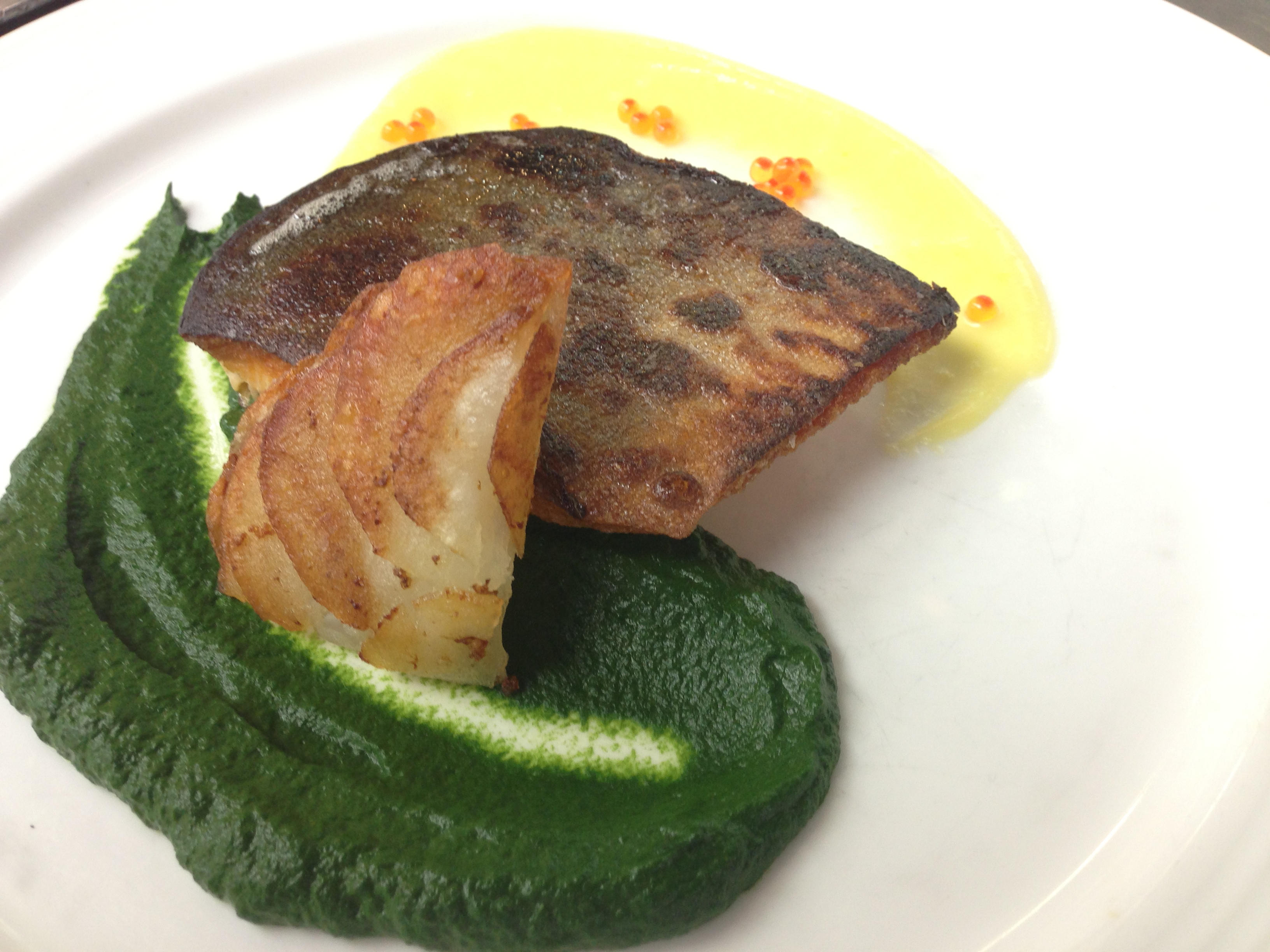 I was on char, Tom was on scallops, and Gabby was plating and making the risotto. When I got my first char order, and when chef fired it (basically telling me to cook it and serve it), I was flustered. “AHH! I have to cook something!” was basically my first reaction. And then that was only compounded by the Level 6 student who had a duck plate on the same ticket as my char. He asked me how long it would take for me to “walk” my char (bring it to the waiter, basically).